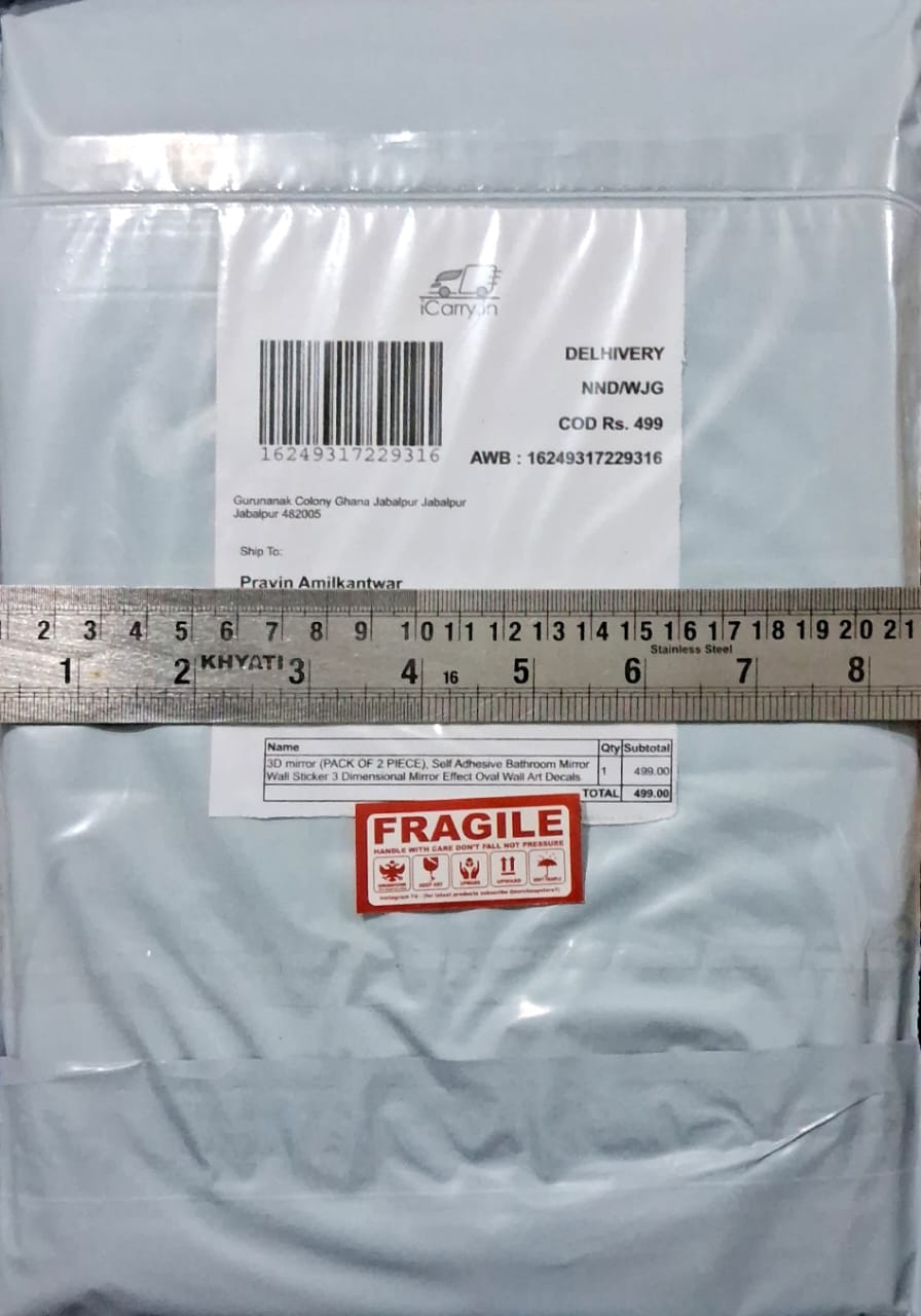 100% Safe delivery Oval Shape 3D Mirror Sticker used in all kinds of household and Makes any space look BIGGER and BRIGHTER